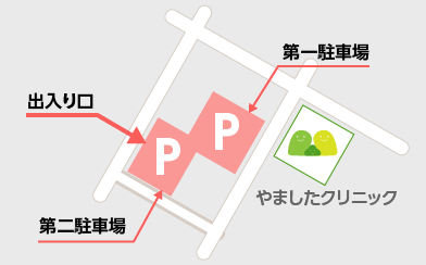 ■駐車場はクリニック脇の駐車スペースと、別途下記の案内図の通り駐車場がございますので、ご利用ください